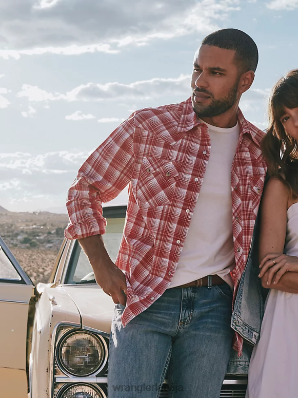 trekns sarkans retro kabatas rietumu krekls ar garām piedurknēm vīriešiem apģērbs Wrangler BFNTB691